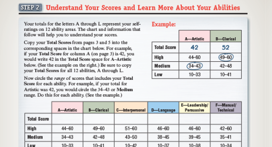 Written at an 8th-grade reading level, this 120-statement assessment raises self-awareness, provides practical insights and information, and creates a foundation for informed career and educational planning. Individuals are asked to read each statement and then indicate how good they are or would be at doing the activity. They then progress through steps that show the abilities they are best at and present career choices that match their abilities.
