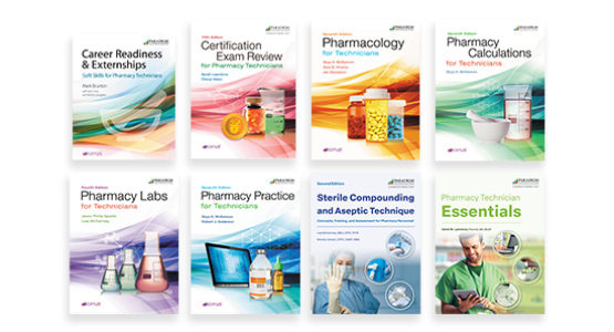 Our Pharmacy Technician series is a complete program solution that develops the skills and knowledge students need to become certified pharmacy technicians. Our full suite of products, competency mapping guides, and program support are designed for success and meet ASHP and ACPE standards.