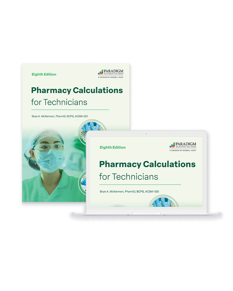 Pharmacy Calculations for Technicians, Eighth Edition, provides mathematical concepts and calculation skills pharmacy technicians need to succeed in an externship experience, certification exam, and career – whether that position is at a community or institutional pharmacy. Guided by clear, complete examples and practice problems, students review mathematical operations and concepts to master different types of pharmacy calculation problems and the methods and formulas used to solve them.